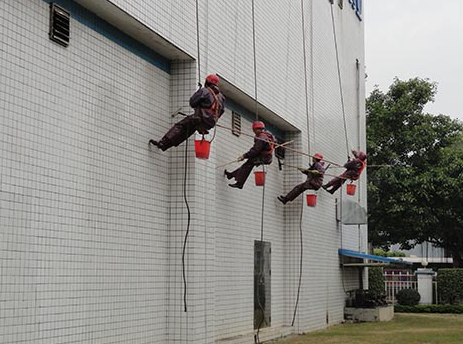 1、外墻清洗的方式現階段外墻清洗具體有這兩種方式:吊板方式和吊籃擦窗方式。吊板方式是用吊繩、吊板將人吊到工作方位開展清理。這樣的方式非常簡單,成本也低,只需職工身體狀況好、繩索對接堅固就可以開展,通常的大廈都能夠用這樣的方式開展清理,可是這樣的方式的操作必須使安全防范措施合格,要不然危害性非常大,造成安全事故的基本都是因安全防范措施不合格造成的。